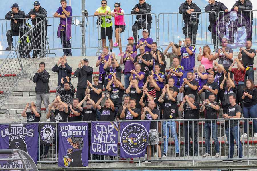 Za nas že tradicionalno neugodno gostovanje v Kranju, je včeraj v gostujoči sektor pripeljalo okoli 50 navijačev Maribora, ki so še enkrat več videli petardo v nasprotnikovi mreži. Povprečno navijanje od sredine prvega polčasa in nekaj vijol'čnega dima v 60. minuti, je vse kar je obeležilo naše gostovanje, hkrati velja izpostaviti tudi gesto Small Facesov, ki so izobesili parolo za pokojnega Roka Černica.