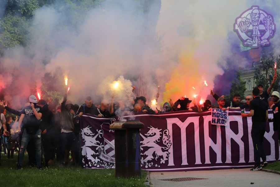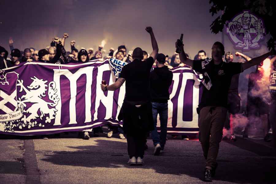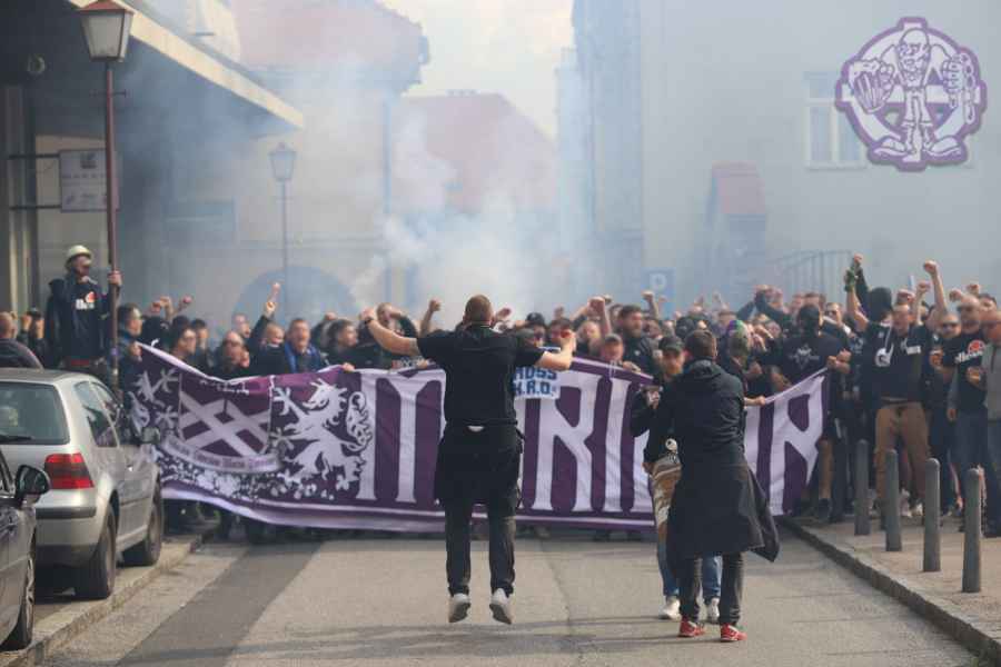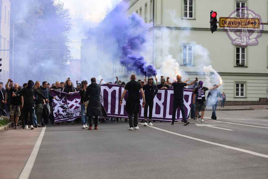 Dobro oddelan derbi iz naše strani, je na žalost pokvarila predstava naših pubecov na terenu, ki bi si lahko z zmago zagotovili že 15. naslov državnih prvakov in tako vse skupaj prestavili še za krog ali dva. Solidno število Viol na zboru, je napovedovalo dober korteo proti stadionu, kar se je tudi uresničilo. Transparent ULTRAS MARIBOR v prvi vrsti, glasna pesem in ogromno prižgane pirotehnike, je dodatno ogrelo še ostale navijače Maribora na južni ploščadi, ko so Viole prišle do stadiona. Glasno navijanje od 1. minute igre ni pojenjalo niti pri vseh treh žabarskih zadetkih. Okoli 15. minute se dvigne koreografija (za katero ponovno gredo pohvale vsem, ki so pomagali pri njenem nastajanju) posvečena 100. letnici nogometa v Mariboru in 1 SSK Maribor, predhodniku NK Branik. Pred jugom je bil dvignjen grb kluba, na tribuni pa izpisana letnica 1919, ki se zaradi nekoliko slabše razporeditve ljudi na jugu ni izpisala najboljše. Udarno mesto na ograji je tokrat spet imel stari beli transparent VIOLE MARIBOR, okoli njega pa ostali večji in manjši. Izobešena je bila tudi fotografija žabarov iz lanskega derbija z prižgano vijol'čno dimno. V prvem polčasu protestno, zaradi dogajanja na terenu iz juga poleti tudi nekaj bakelj in prižge se nekaj vijol'čnih dimnih. V drugem polčasu se navijanje nadaljuje v istem ritmu kot v prvem. Tekom drugega polčasa je dvignjenih nekaj parol namenjenim gostom iz severa (ŠE OBSTAJA GRUPA V SLOVENIJI, PRED KATERO NISTE BEŽALI?, ZA TRIPADVISOR IN VIOLE, JE LJUBLJANA NA 1. MESTU ZA IZLETE IN SPREHODE, zraven pa 5 fotografij Viol v LJ iz zadnjih derbijev in ZELENI Z(M)AJČKI). V 60. minuti sledi konkretni pyroshow, med katerim večina bakelj konča na terenu. Pred koncem tekme sta dvignjeni še paroli DRŽI SE ZORAN in CHRIS KEEP RIGHT ON!. Zadnjih 10. minut tekme se poje pesem V ZMAGI AL PORAZU, pri pozdravu igralcev po koncu tekme se prižge že nekaj pirotehnike in tribuna jug s svojo energijo, pubecom na terenu "vlije" novih moči (za razliko od nekaterih na ostalih tribunah). Po kakšnih 10. minutah navijanja po tekmi, se igralci vrnejo iz slačilnice in še enkrat pozdravijo Viole, sledi glasno skandiranje ŠAMPIONI in nekaj pozdravov gostom iz Lj. Prvenstvo se nadaljuje v sredo 15.5. ob 20:15, ko gostujemo v Celju.