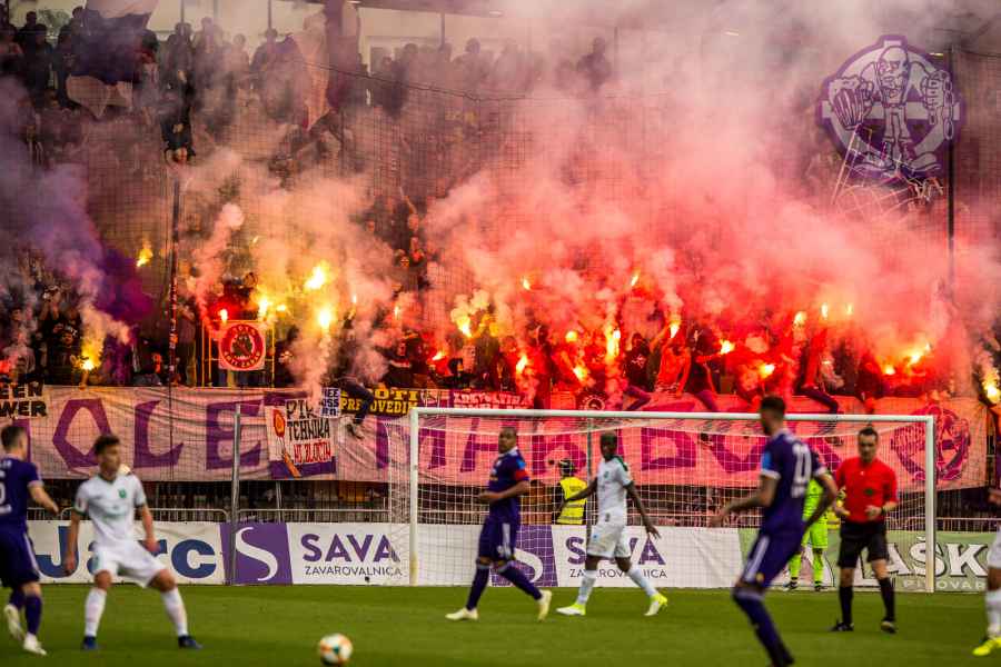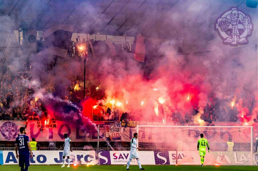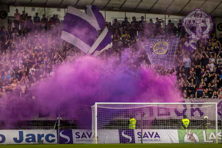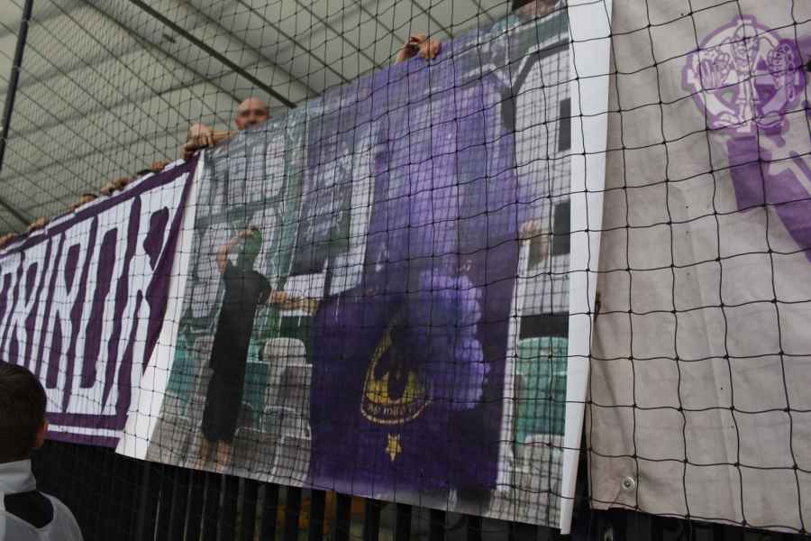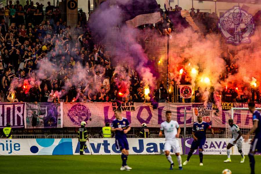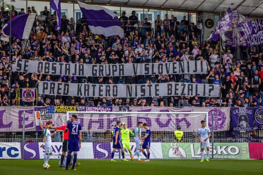 Dobro oddelan derbi iz naše strani, je na žalost pokvarila predstava naših pubecov na terenu, ki bi si lahko z zmago zagotovili že 15. naslov državnih prvakov in tako vse skupaj prestavili še za krog ali dva. Solidno število Viol na zboru, je napovedovalo dober korteo proti stadionu, kar se je tudi uresničilo. Transparent ULTRAS MARIBOR v prvi vrsti, glasna pesem in ogromno prižgane pirotehnike, je dodatno ogrelo še ostale navijače Maribora na južni ploščadi, ko so Viole prišle do stadiona. Glasno navijanje od 1. minute igre ni pojenjalo niti pri vseh treh žabarskih zadetkih. Okoli 15. minute se dvigne koreografija (za katero ponovno gredo pohvale vsem, ki so pomagali pri njenem nastajanju) posvečena 100. letnici nogometa v Mariboru in 1 SSK Maribor, predhodniku NK Branik. Pred jugom je bil dvignjen grb kluba, na tribuni pa izpisana letnica 1919, ki se zaradi nekoliko slabše razporeditve ljudi na jugu ni izpisala najboljše. Udarno mesto na ograji je tokrat spet imel stari beli transparent VIOLE MARIBOR, okoli njega pa ostali večji in manjši. Izobešena je bila tudi fotografija žabarov iz lanskega derbija z prižgano vijol'čno dimno. V prvem polčasu protestno, zaradi dogajanja na terenu iz juga poleti tudi nekaj bakelj in prižge se nekaj vijol'čnih dimnih. V drugem polčasu se navijanje nadaljuje v istem ritmu kot v prvem. Tekom drugega polčasa je dvignjenih nekaj parol namenjenim gostom iz severa (ŠE OBSTAJA GRUPA V SLOVENIJI, PRED KATERO NISTE BEŽALI?, ZA TRIPADVISOR IN VIOLE, JE LJUBLJANA NA 1. MESTU ZA IZLETE IN SPREHODE, zraven pa 5 fotografij Viol v LJ iz zadnjih derbijev in ZELENI Z(M)AJČKI). V 60. minuti sledi konkretni pyroshow, med katerim večina bakelj konča na terenu. Pred koncem tekme sta dvignjeni še paroli DRŽI SE ZORAN in CHRIS KEEP RIGHT ON!. Zadnjih 10. minut tekme se poje pesem V ZMAGI AL PORAZU, pri pozdravu igralcev po koncu tekme se prižge že nekaj pirotehnike in tribuna jug s svojo energijo, pubecom na terenu "vlije" novih moči (za razliko od nekaterih na ostalih tribunah). Po kakšnih 10. minutah navijanja po tekmi, se igralci vrnejo iz slačilnice in še enkrat pozdravijo Viole, sledi glasno skandiranje ŠAMPIONI in nekaj pozdravov gostom iz Lj. Prvenstvo se nadaljuje v sredo 15.5. ob 20:15, ko gostujemo v Celju.